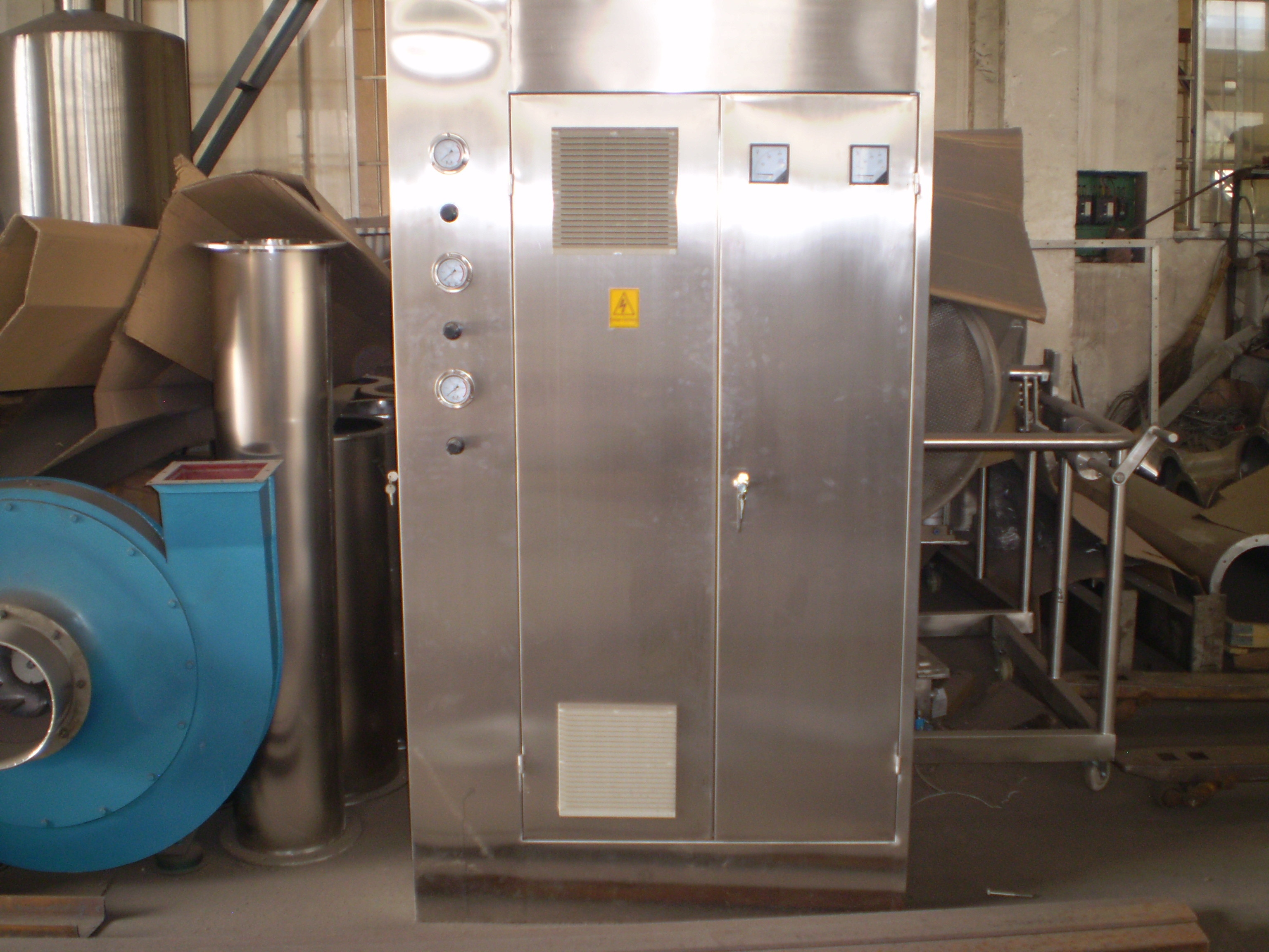 The fresh air is sucked by fan and then filtered by pre, post and sub-high efficiency to achieve 100,000 grades clean effect. Pass through steam heat exchanger the temperature of air rises to a certain temperature. The heated air passes through flow distributor enters every layer, passes through each layer of raw material to be dried, humid air is exhausted through the inclined air channel under the drying tray. Part of the air circulates in the system